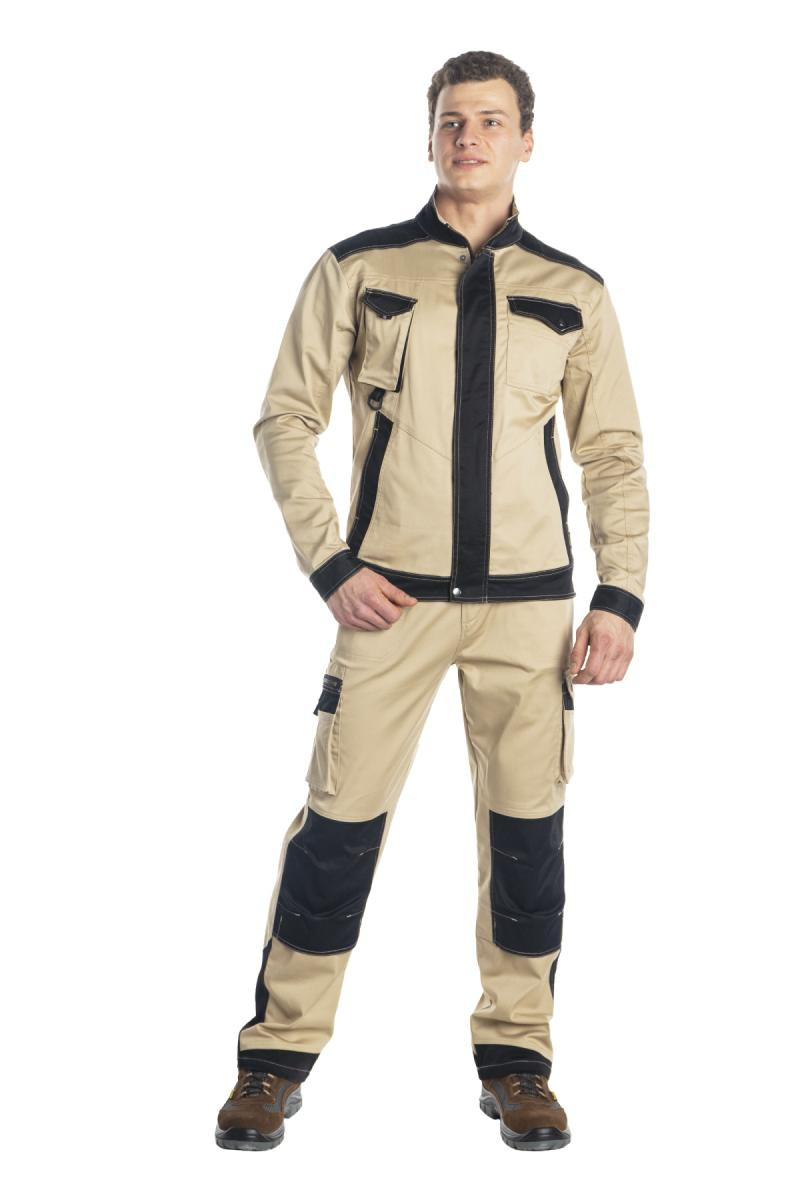 Куртка летняя и демисезонная из смесовой ткани акцентного сочетания цветов: бежевого и чёрного, для защиты от общих производственных загрязнений.• Силуэт: полуприлегающий