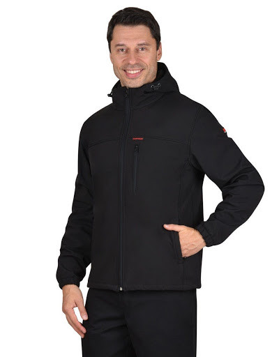 Куртка рабочая АЗОВ капюшон софтшелл черная