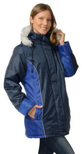 Куртка зимняя женская КАРЕЛИЯ длинная темно-синия/васильковая