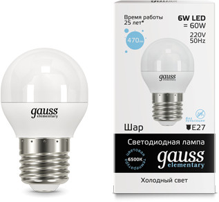 Лампа светодиодная GAUSS LED Elementary Globe 6Вт E27 4100К
