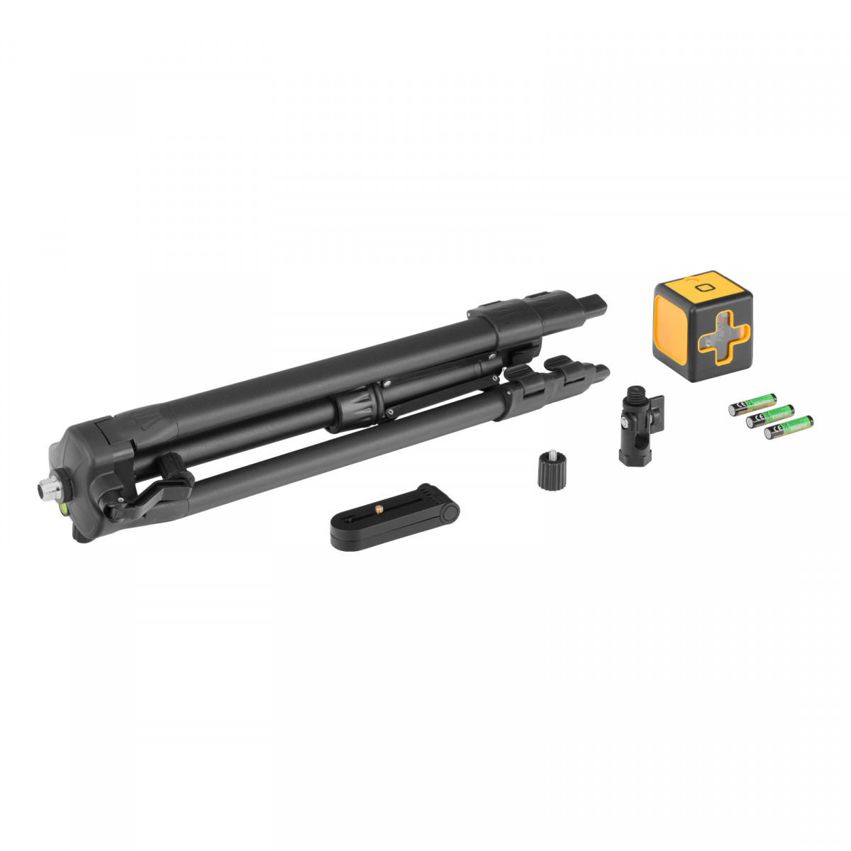 Лазерный уровень - 1 штМагнитный держатель - 1 штБатарейка ААА - 3 штАдаптер 5/8-1/4 - 1 штУгловой адаптер 5/8 - 1 штШтатив - 1 штСумка для штатива - 1 штИнструкция - 1 шт