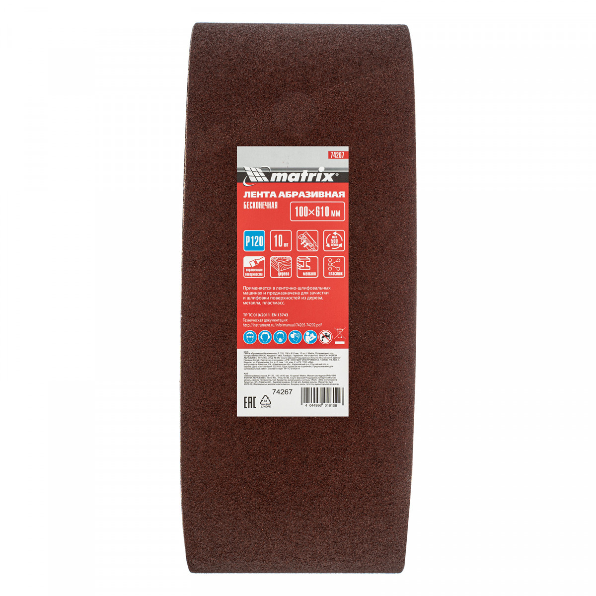 Бесконечная абразивная лента Matrix 74267 с зернистостью P 120, 10 шт. в упаковке, устанавливается на ленточную шлифовальную машину, совместимую со сменными элементами размером 100 х 610 мм. Применяется для чистовой обработки деревянных и металлических поверхностей.