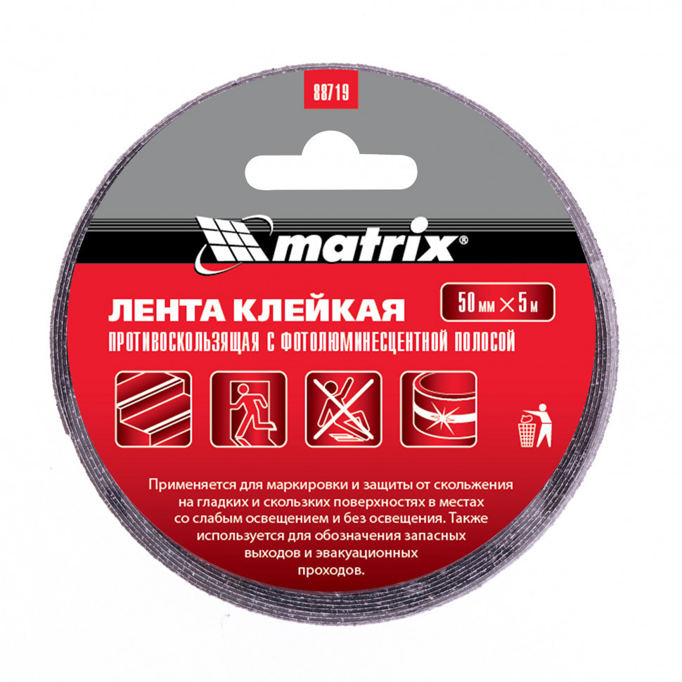 Лента клейкая противоскользящая, c фотолюминисцентной полосой 50 мм x 5 м Matrix