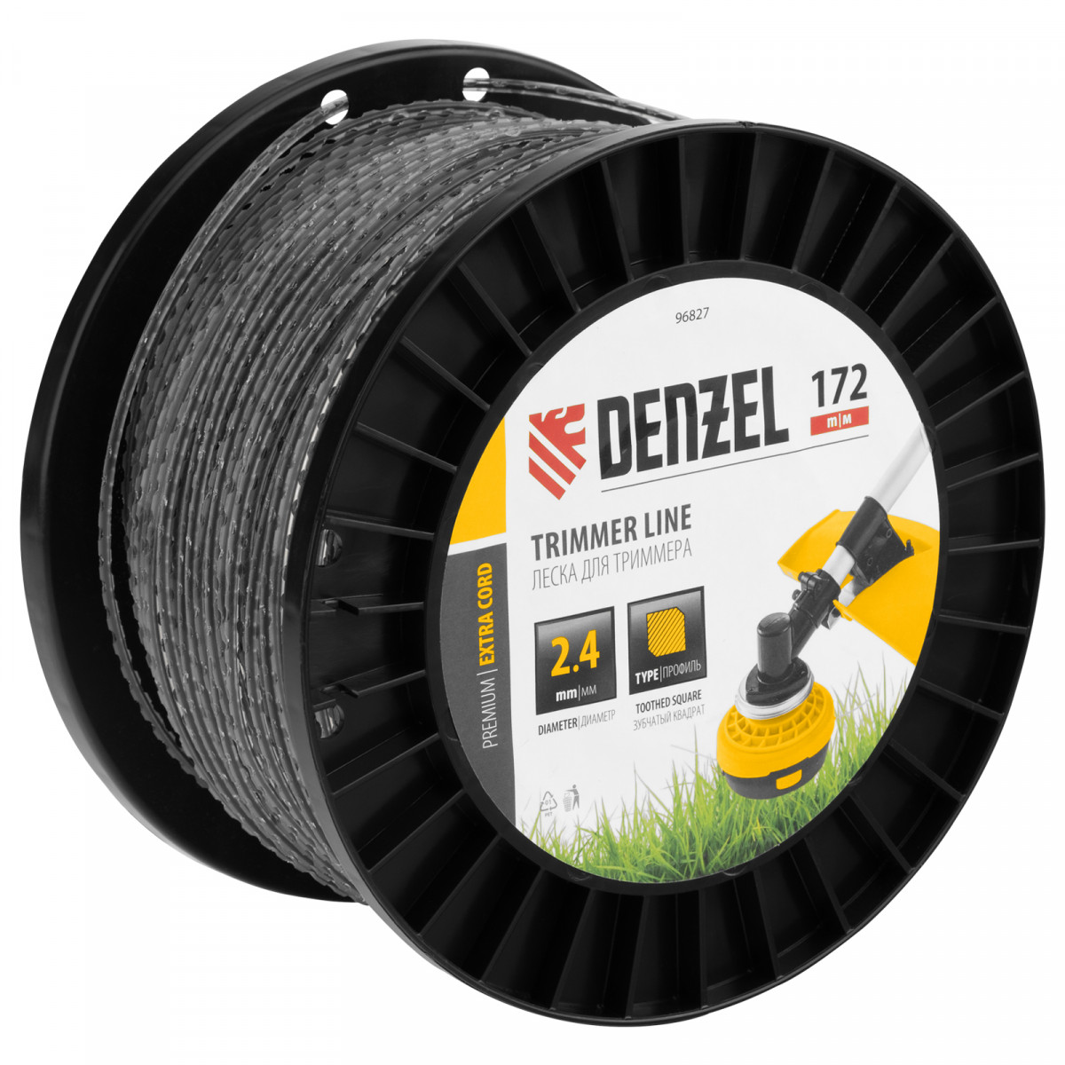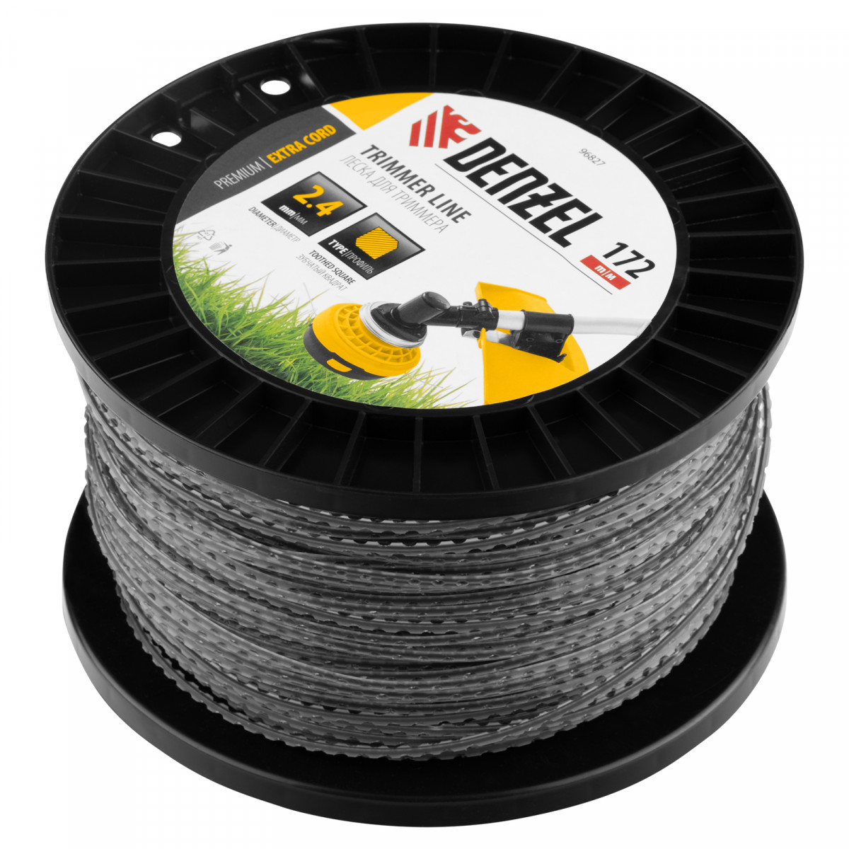 Леска для триммера двухкомпонентная зубчатый квадрат, 2,4мм х 172м, на DIN кат. EXTRA CORD Denzel