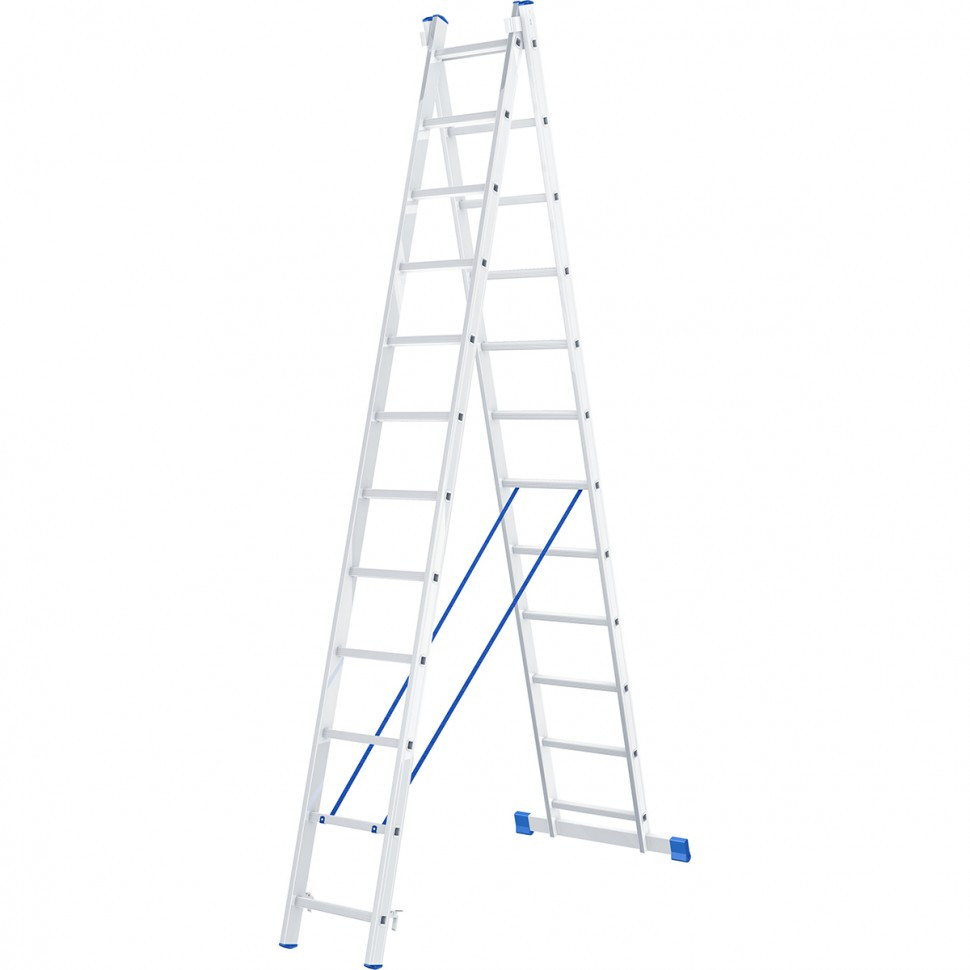 Лестница, 2 х 12 ступеней, алюминиевая, двухсекционная, Сибртех