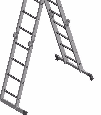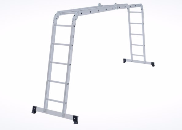 Лестница-трансформер Новая Высота 4х5 604405 оснащена специальными насадками из термоэластопласта, что исключает ее скольжение по поверхности рабочей площадки. Использование легированного алюминия обеспечивает малый вес модели и способствует ее высокой устойчивости к образованию коррозии. Благодаря этому приспособление активно применяется на открытой местности. Укрепление несущей конструкции дополнительными ребрами жесткости позволяет модели выдерживать нагрузку до 150 кг. Качественные шарнирные замки дают возможность применять лестницу как приставную односекционную, приставную согнутую, стремянку и помост. Поставка изделия в термоусадочной пленке гарантирует его доставку без царапин и загрязнения. Нескользящие рельефные ступени способствуют безопасной эксплуатации приспособления.
