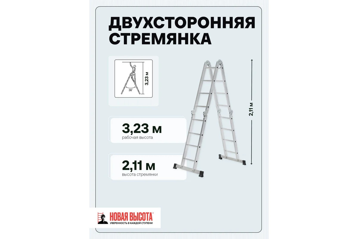 • Преимущества Новая Высота Лестница сделана из алюминиевого профиля - прочность и надежность;