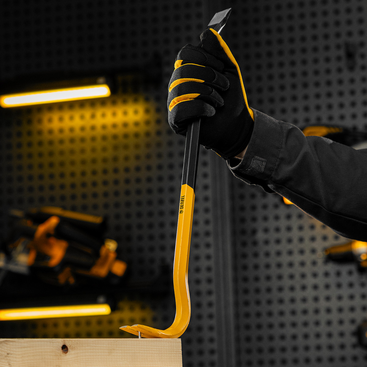 • Яркий цвет — лом-гвоздодер хорошо заметен среди других инструментов.