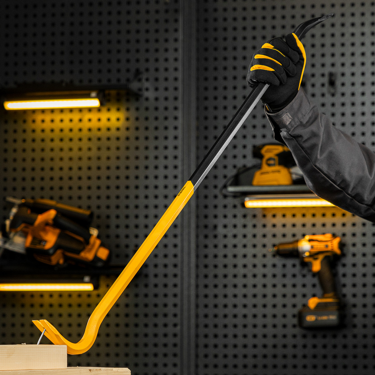 • Яркий цвет — лом-гвоздодер хорошо заметен среди других инструментов.