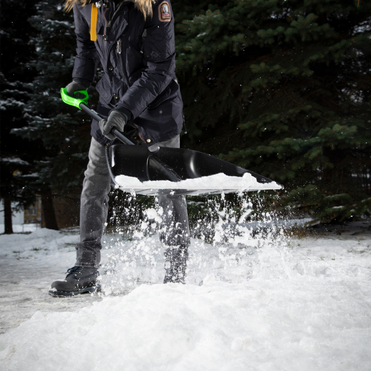 - Глубокий ковш с ребрами жесткости позволяет переносить большое количество снега без риска поломки.