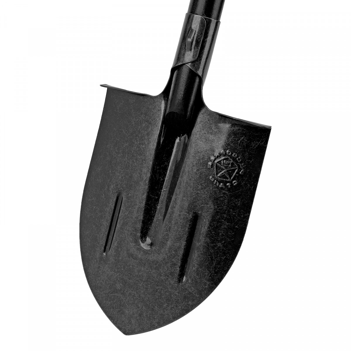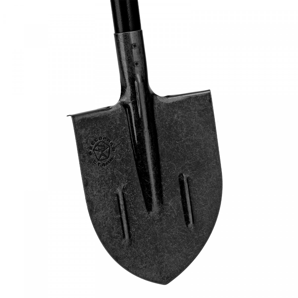 - Прочность и долговечность — полотно дополнительно усилено ребрами жесткости, черенок изготовлен из древесины 1 сорта и окрашен для защиты от рассыхания и воздействия влаги.