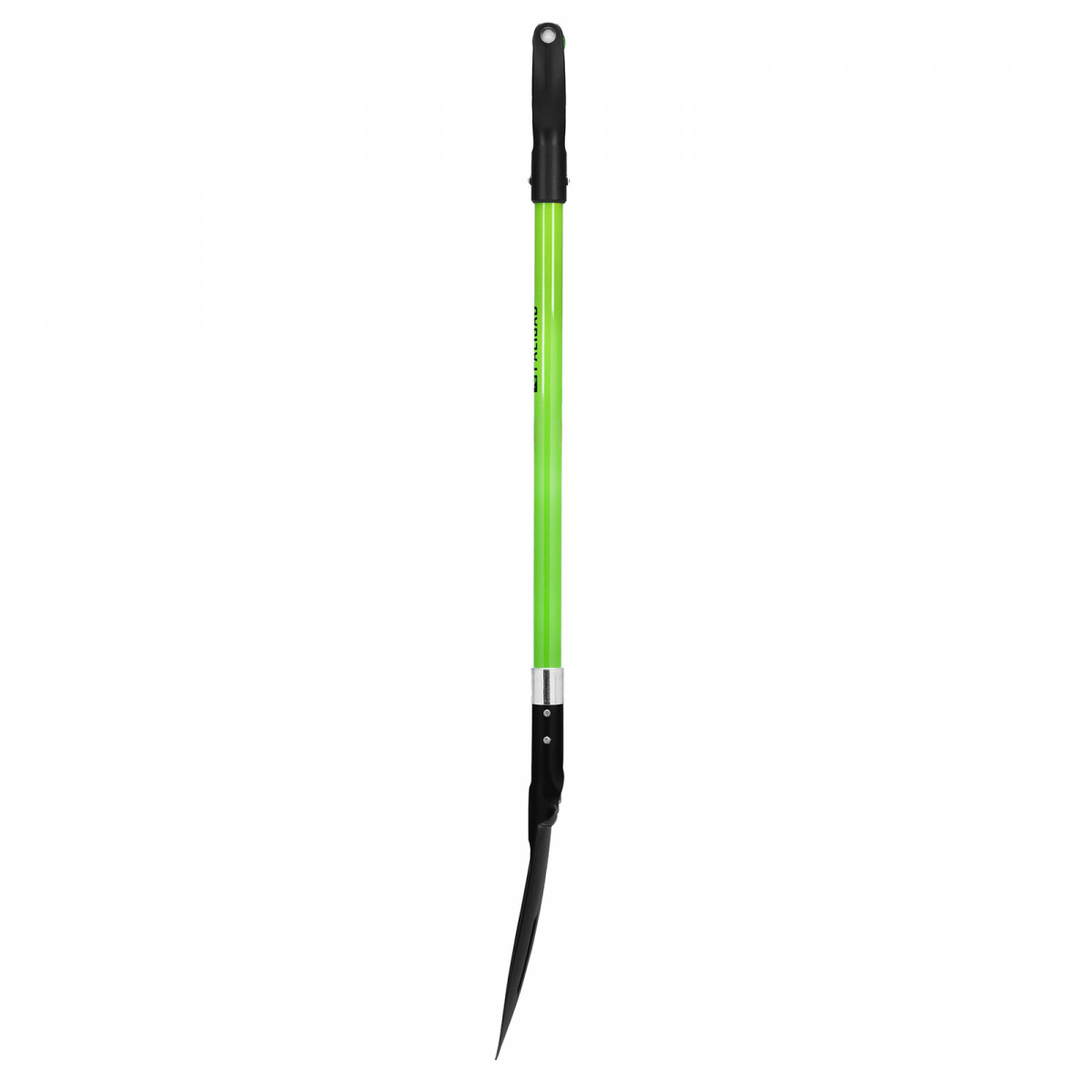 • Продуманная конструкция — фибергласовый черенок не утяжеляет лопату и не разрушается под действием ультрафиолета, а удлиненная цельновырубная тулейка предотвращает его излом.