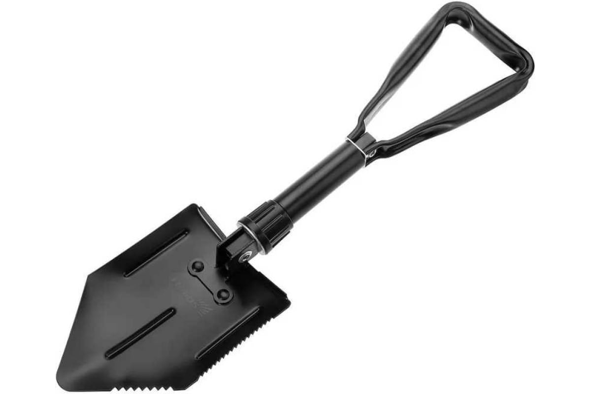 Компактная, легкая, но в тоже время прочная и практичная лопата – незаменимая вещь для автомобилистов, туристов, рыбаков и охотников. За счет малых габаритных размеров прекрасно входит в походный рюкзак или бардачок автомобиля. Лопата может фиксироваться в двух положениях: вертикально (как лопата) и под углом в 90 градусов (как тяпка). На одной грани лопаты имеются зубцы для перерубания корней деревьев. Идет в комплекте с удобным чехлом для транспортировки.Характеристики:• Материал: сталь (1,5 мм)