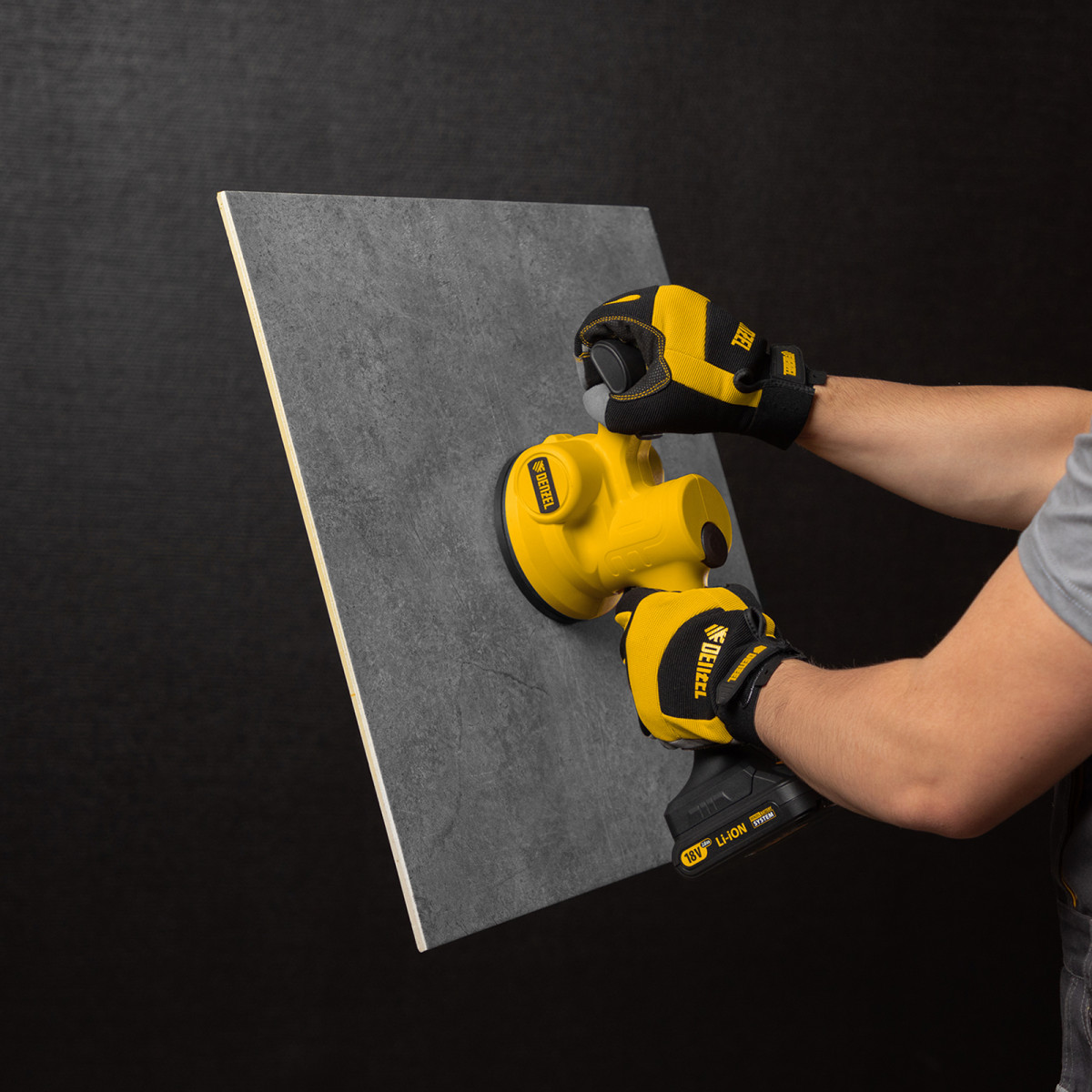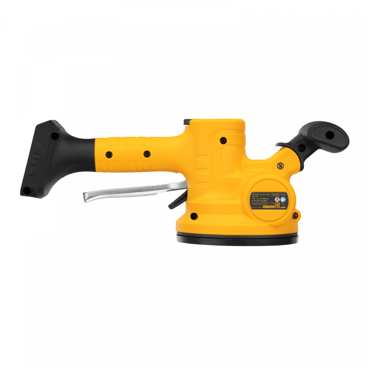 Машина для укладки плитки Denzel TTM-130-0 28481 работает от аккумуляторной батареи Li-Ion емкостью 2 А/ч, с рабочим напряжением 18 В, и используется для проведения облицовочных работ. При помощи присоски диаметром 130 мм оказывает вибрационное воздействие на поверхность плитки со скоростью 500-12000 об/мин, что способствует равномерному распределению клея, а также препятствует образованию воздушных пузырьков и полостей под плиткой, позволяя избежать ее перекоса и повреждения.,Машина поставляется без АКБ и зарядного устройства, на нее можно установить универсальный аккумулятор, совместимый с любым инструментом единой платформы Denzel battery system 18V серии IB.