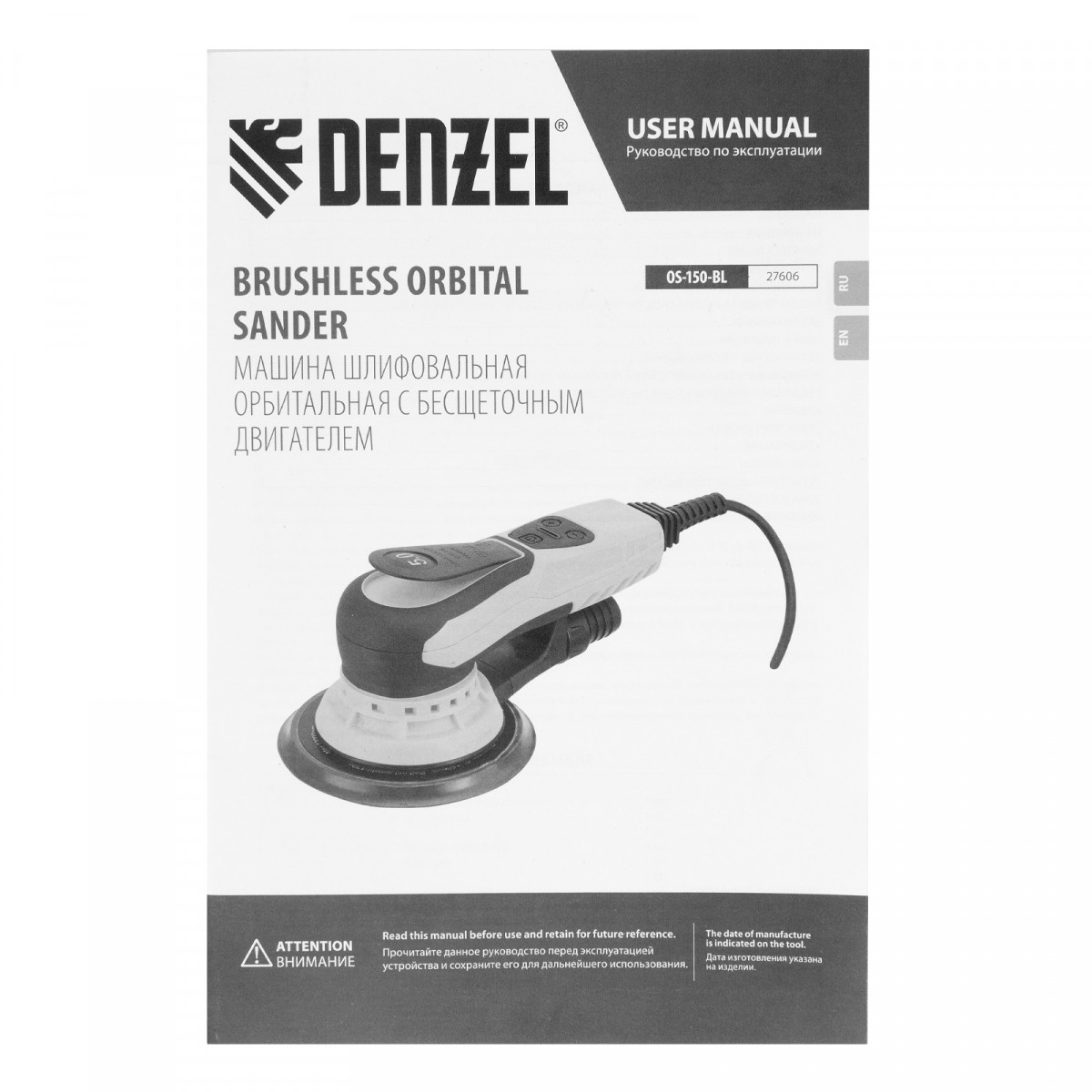 Машина шлифовальная орбитальная бесщет OS-150-BL, 350 Вт, 4000-10000 об/мин Denzel