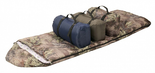 Спальный мешок с капюшоном, на молнии, расстегивается одеялом. Ширина в застегнутом состоянии 75 см. Упаковывается в чехол с двумя стяжками из стропы. Выполняется из ткани таффета с водоотталкивающей пропиткой.