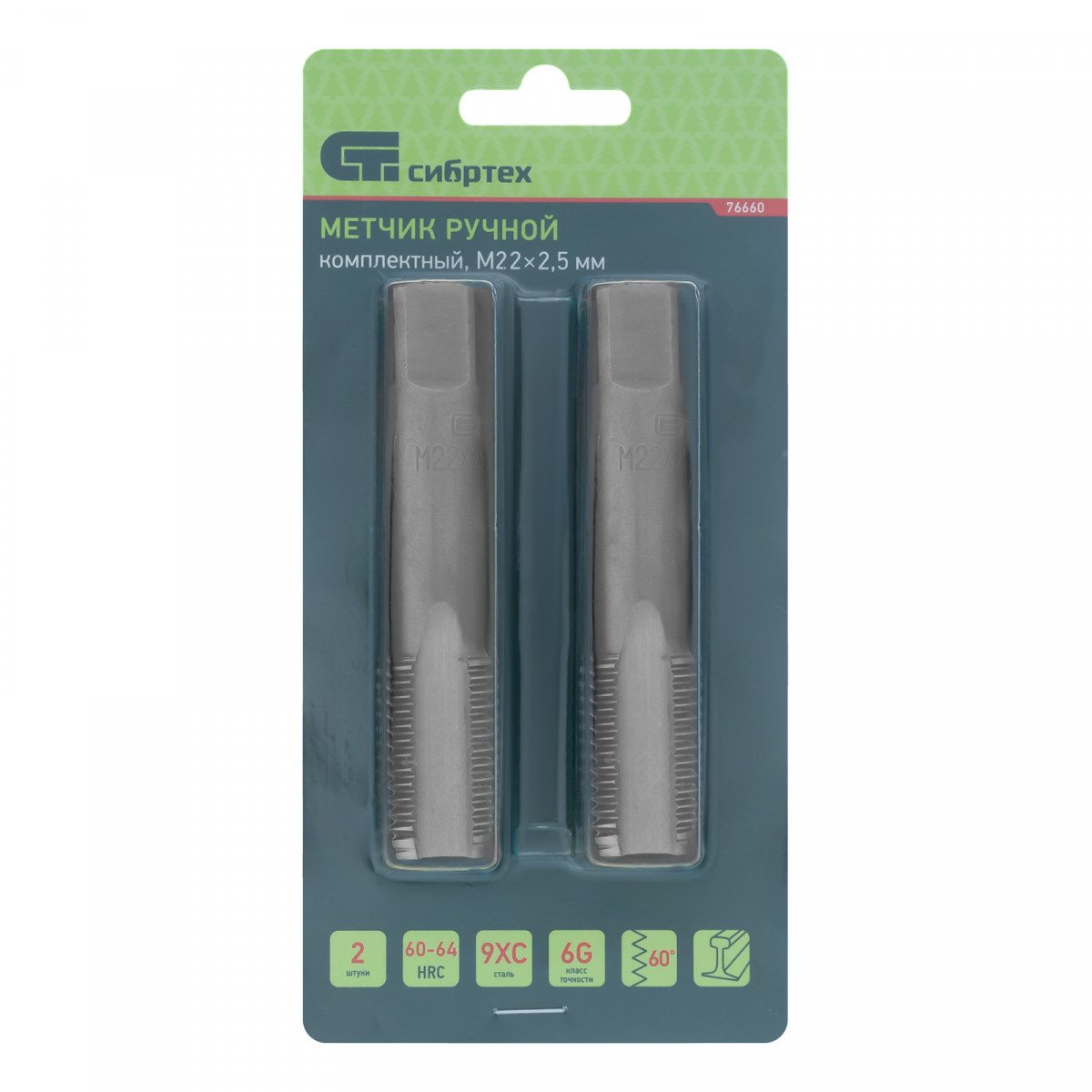 Метчик ручной М22 х 2.5 мм, комплект из 2 шт Сибртех