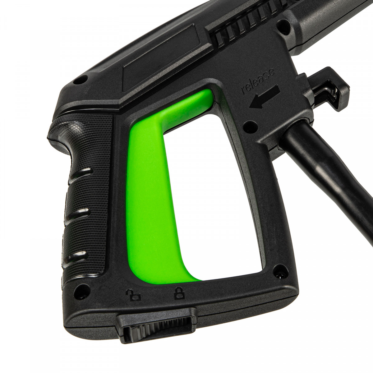 • Быстрая подготовка к работе — шланг соединяется с пистолетом в одно нажатие без применения инструмента и легко подключается к моечной машине через быстросъемный адаптер.