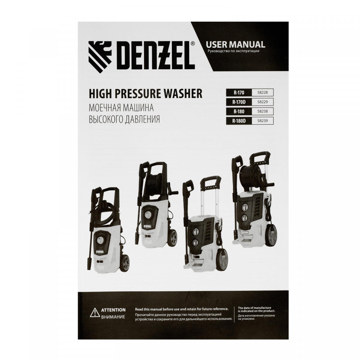 Моечная машина высокого давления R-180, 2200 Вт, 180 бар, 380 л/ч, колесная Denzel