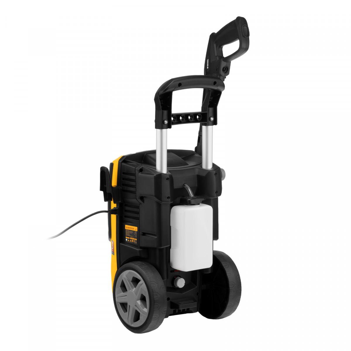 - Использование моющего средства — машина имеет встроенный бачок, также можно подключить внешний пеногенератор, входящий в комплект поставки.