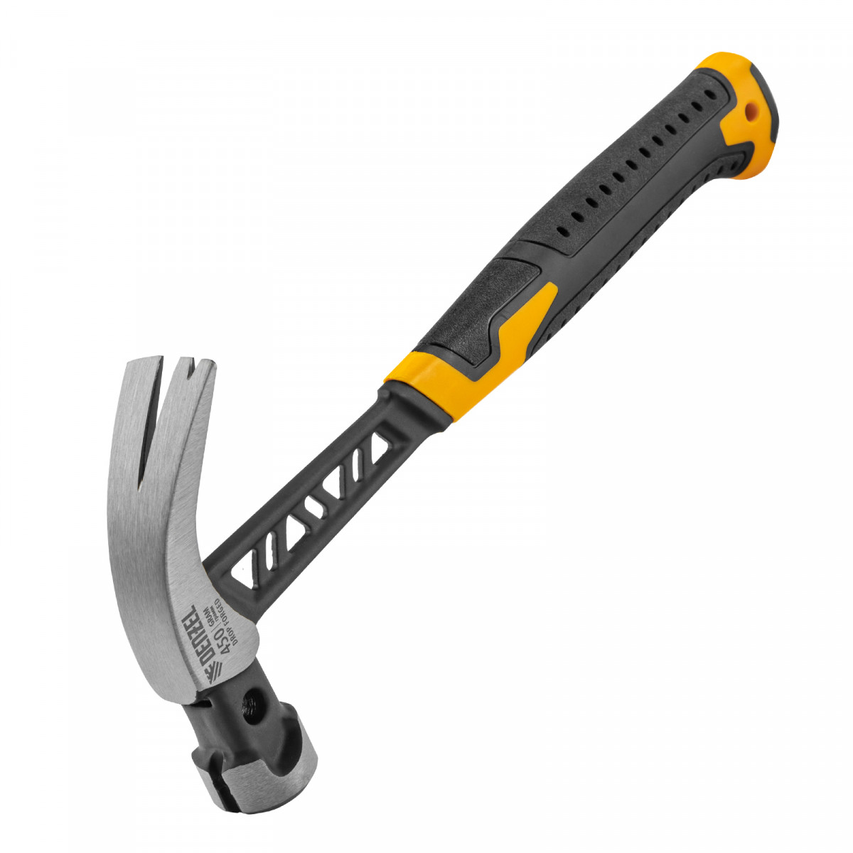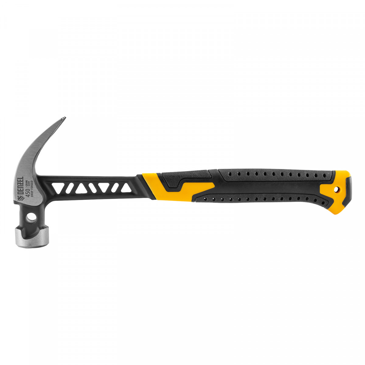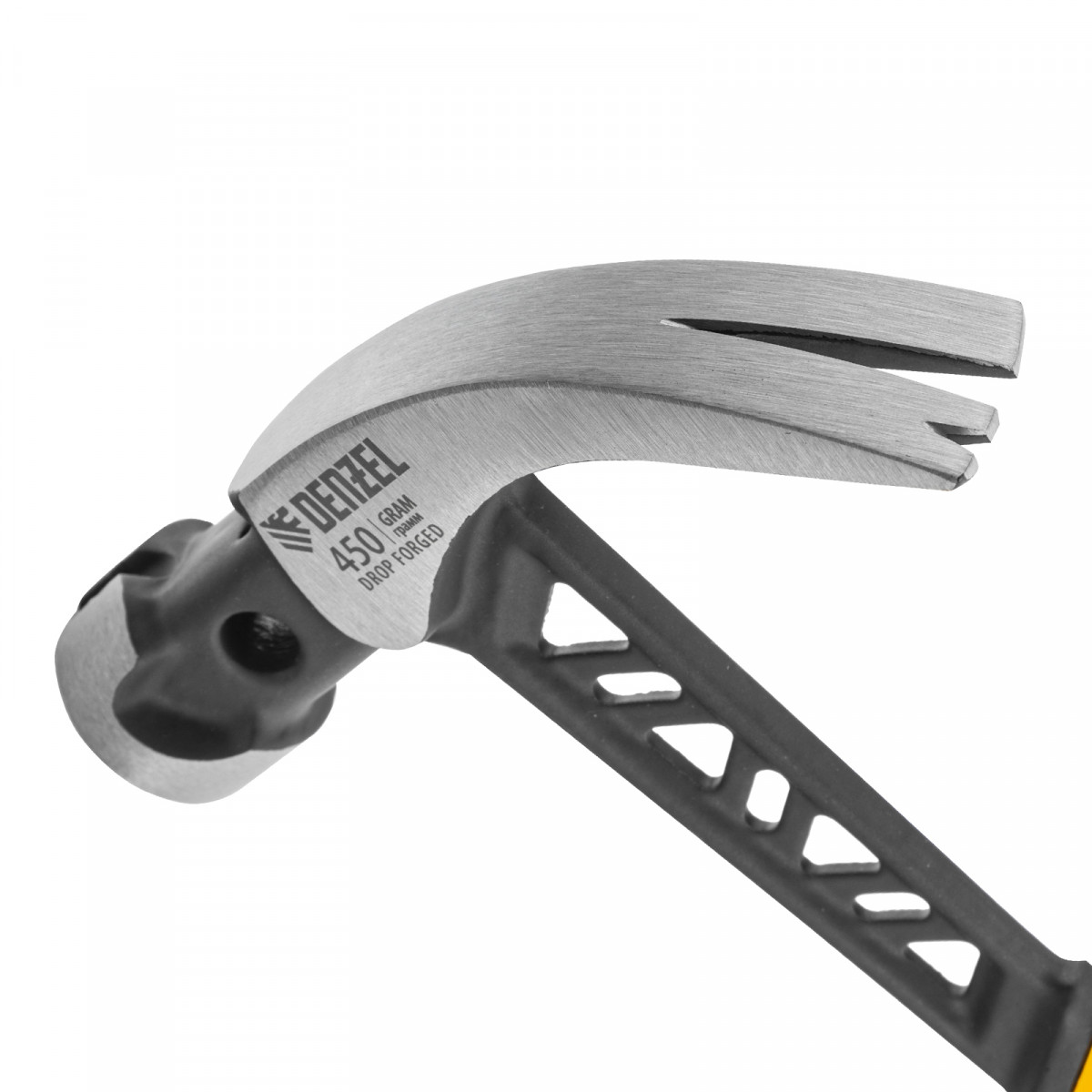Молоток-гвоздодёр 450 г, цельнокованый,боек с магнитом, двухкомп. обрезин. рук-ка Denzel