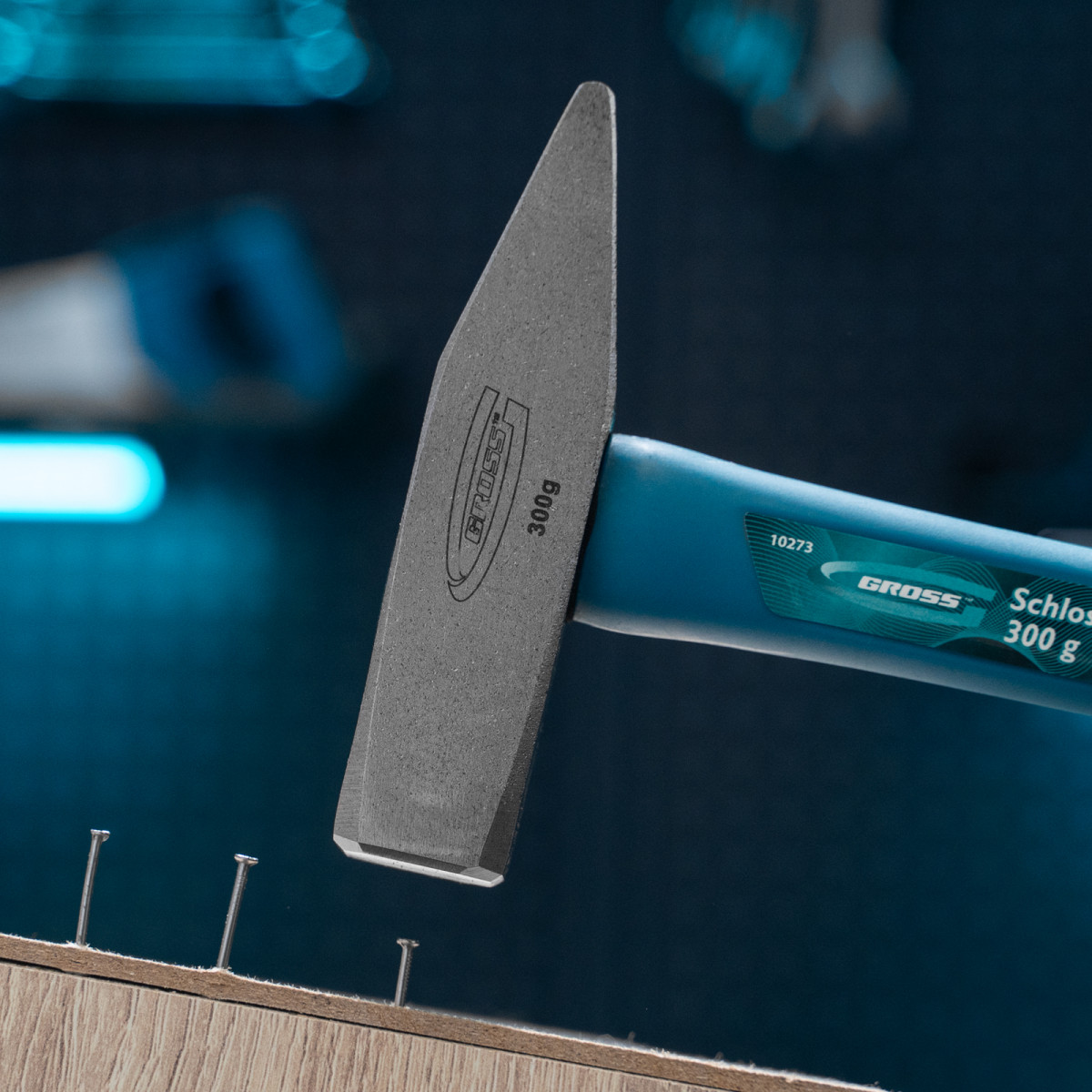 Слесарный молоток Gross 10273 с квадратным бойком весом 300 г и фибергласовой обрезиненной рукояткой предназначен для работы с металлическими заготовками, забивания гвоздей, штырей, дюбелей и других крепежей. Подходит для манипуляций в узких местах благодаря заостренной форме бойка. Молоток рекомендован для профессионального и домашнего применения.
