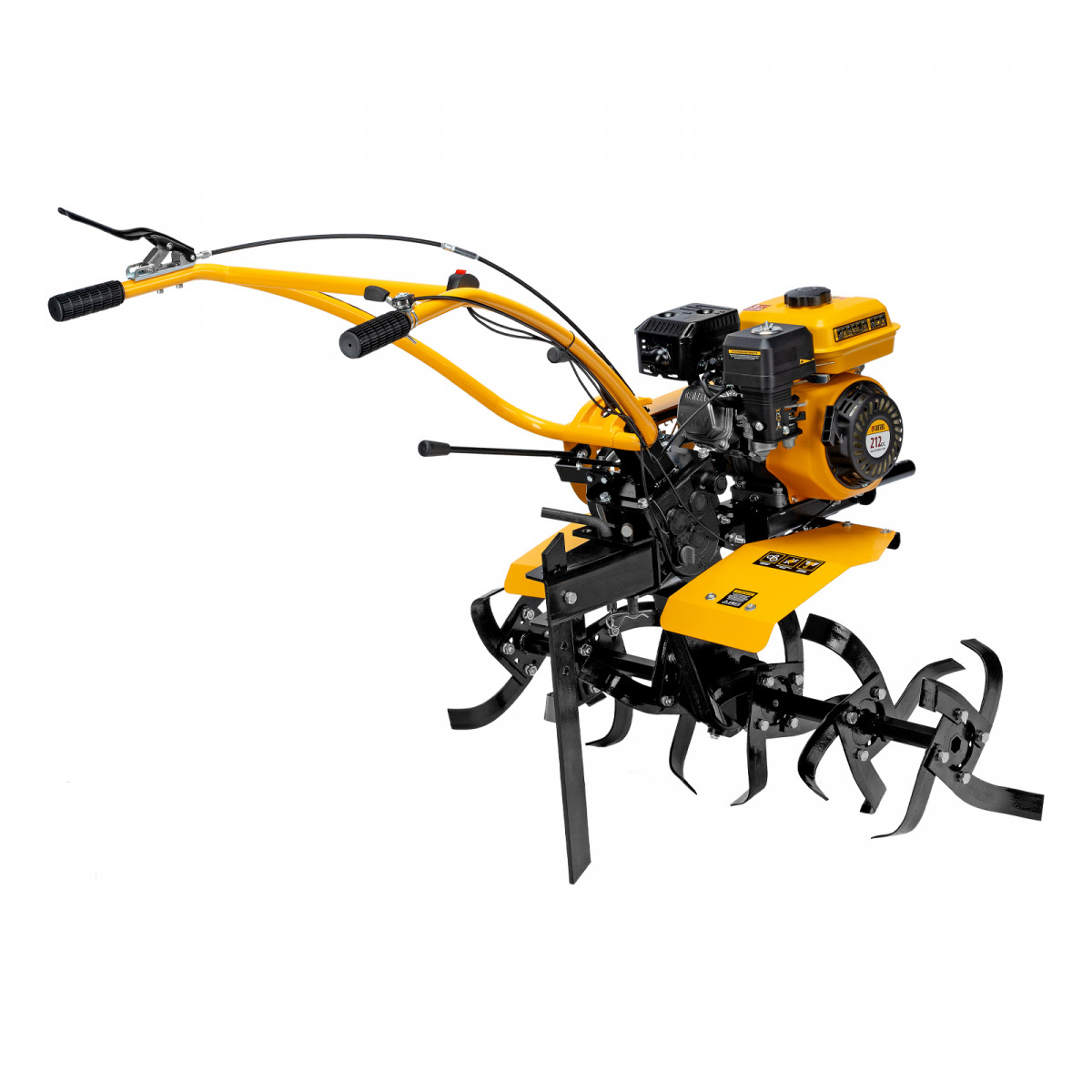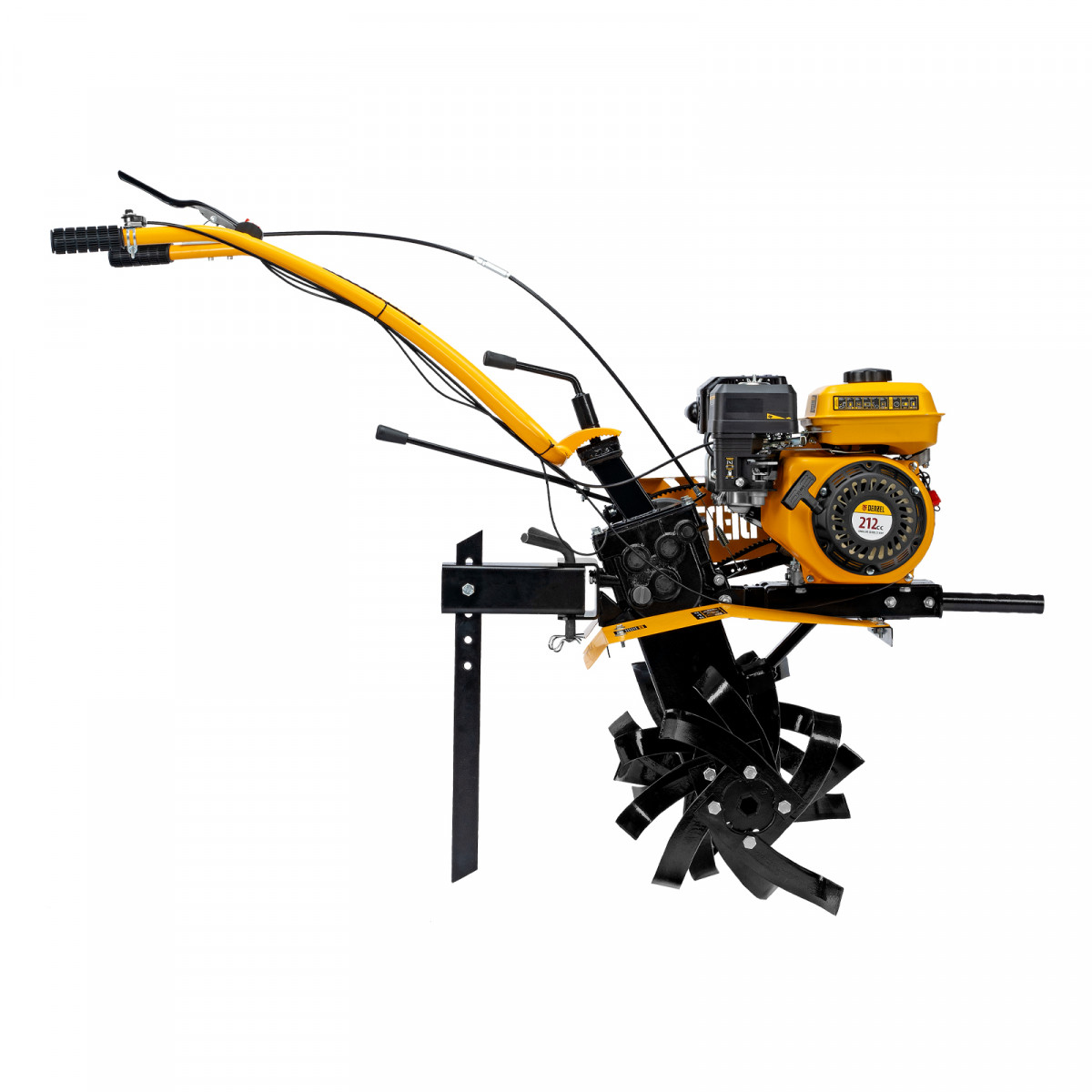 • Эффективная работа — благодаря усиленному шестеренчато-цепному редуктору с чугунным корпусом мотоблок успешно справляется даже с плотным, глинистым грунтом.