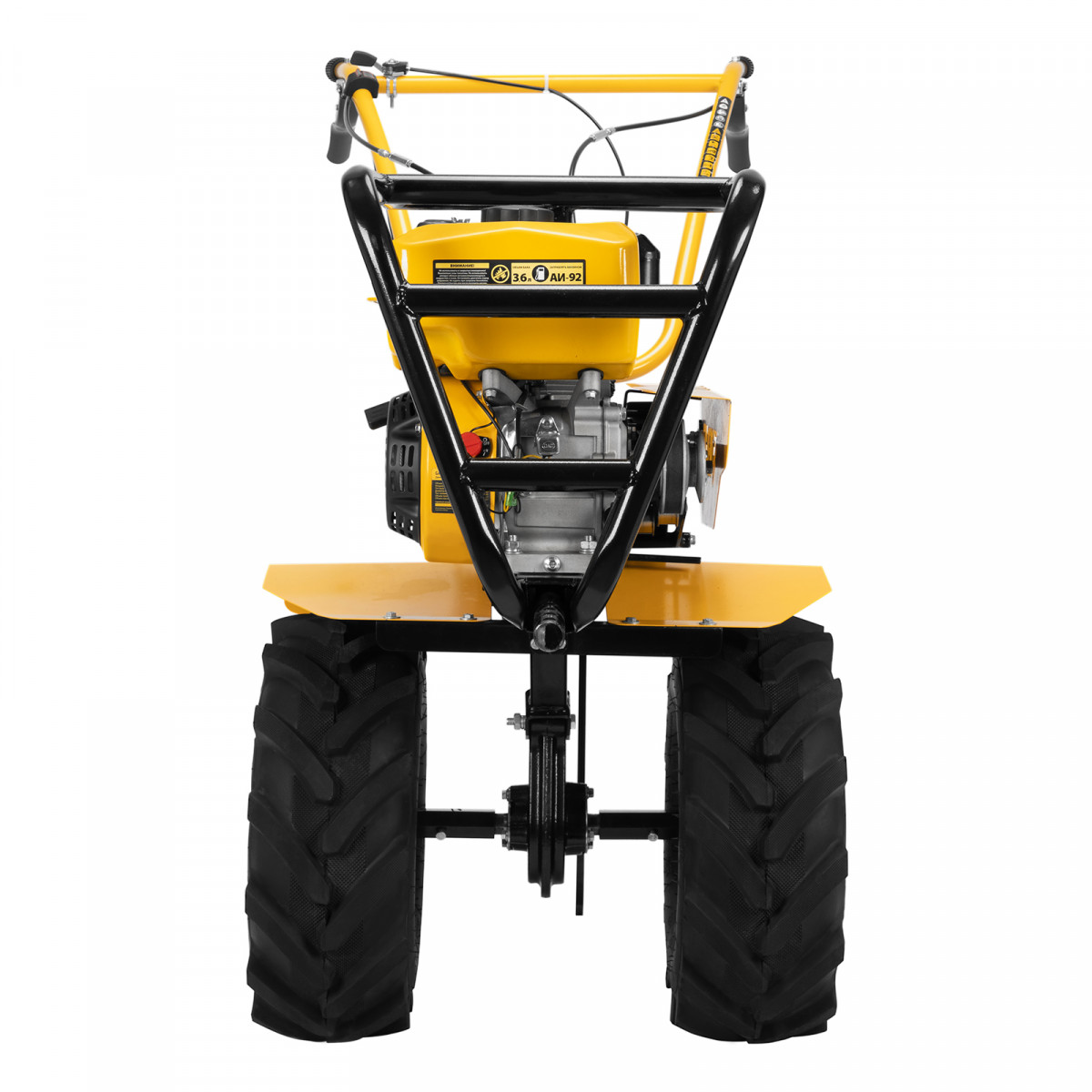 - Усиленная рама — ключевые узлы надежно защищены, мотоблок удобно транспортировать.