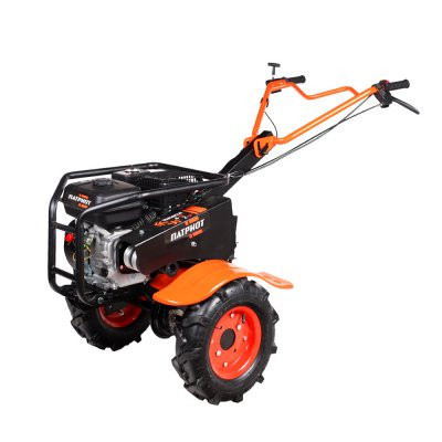 Это мнгогофункциональный мотокультиватор с двигателем 7,8 л.с. Укомплектован фрезами и большими пневматическими колесами. Переключение скоростей осуществляется через коробку передач, а включение пониженной или повышенной передачи можно производить перекидыванием ремня с одной проточки шкива на другую: 4 вперед, 2 назад. Уже установленный на мотокультиватор трехручейковый шкив дает возможность подключать косилку и снегоуборщик, а мощный прицепной узел является самым распространенным в России и дает возможность устанавливать различное навесное оборудование, включая тележку. Отдельно можете приобрести и установить тележку, плуг, окучник, картофелевыкапыватель.Усиленная рама защищает воздушный фильтр, бензобак и глушитель от поломок во время транспортировки и хранении. Такая рама решает проблему погрузки и разгрузки мотоблока, теперь есть за что удобно взять и поднять мотокультиватор. Чугунный редуктор цельнолитой.