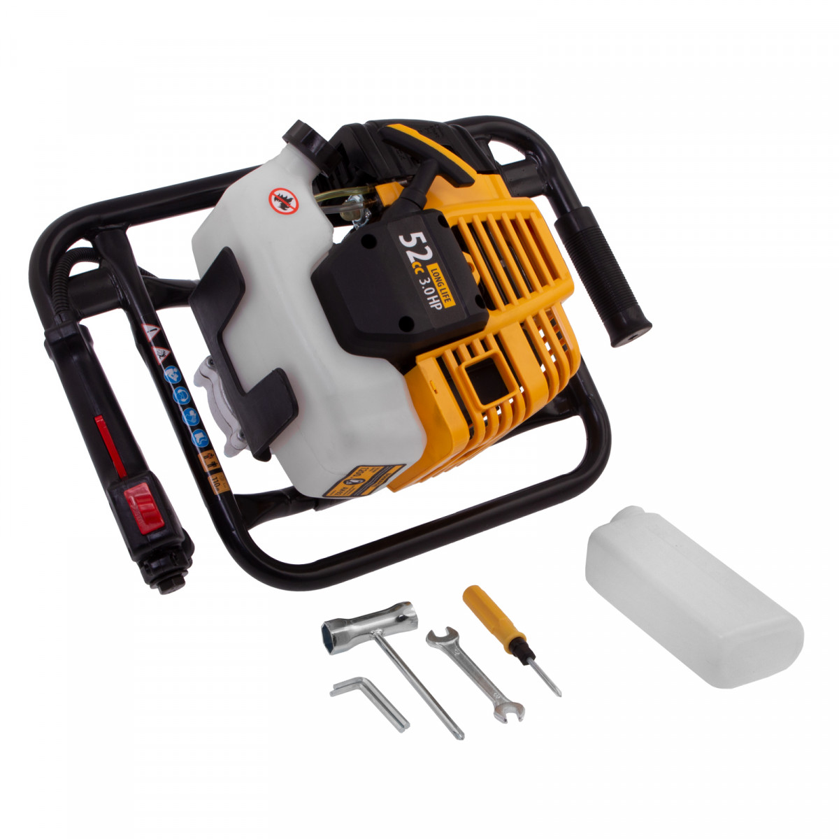 • Быстрая подготовка к работе — мотобур поставляется в сборе, достаточно добавить смазку при необходимости, установить шнек и залить топливо в бак (шнек в комплект не входит).