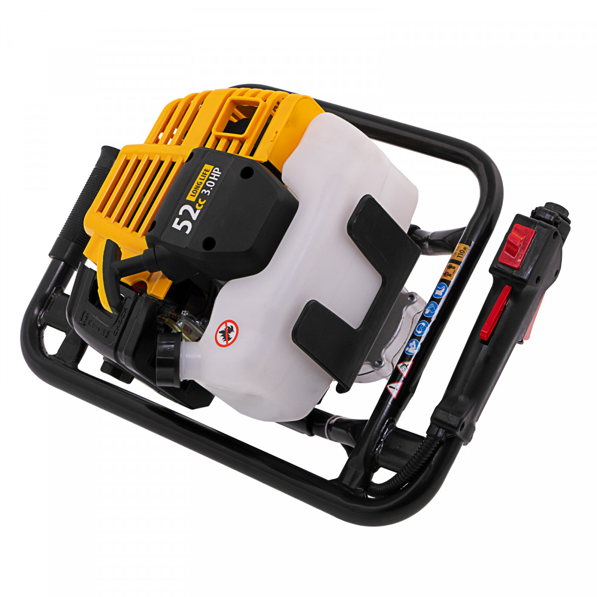 Мотобур Denzel DX-52 56001 с объемом двигателя 52 см3 и диаметром соединения 20 мм предназначен для получения отверстий и углублений во льду или в грунте максимальным диаметром 300 мм. Мощный и экономичный двигатель мощностью 3 л. с. позволяет эффективно решать поставленные задачи. Для бурения отверстий диаметром более 150 мм и глубиной более 1 м предусмотрена возможность управления мотобуром двумя пользователями. Устройство будет полезно на строительной площадке, загородном участке, пригодится также во время зимней рыбалки.