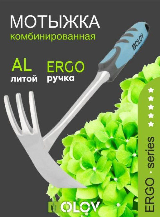 Мотыжка Комбинированная 3-х зубые грабли с лопаткой алюминиевая с эргономичной ручкой OLOV Эрго