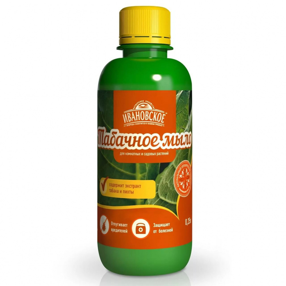 Природное средство для защиты комнатных и садовых растений от болезней и вредителей. Экстракт табака усиливает губительный для насекомых эффект препарата являясь при этом безопасным для человека. Пихтовый экстракт, входящий в состав мыла, активизирует иммунитет, повышает устойчивость растений к болезням и, тем самым повышая урожайность.