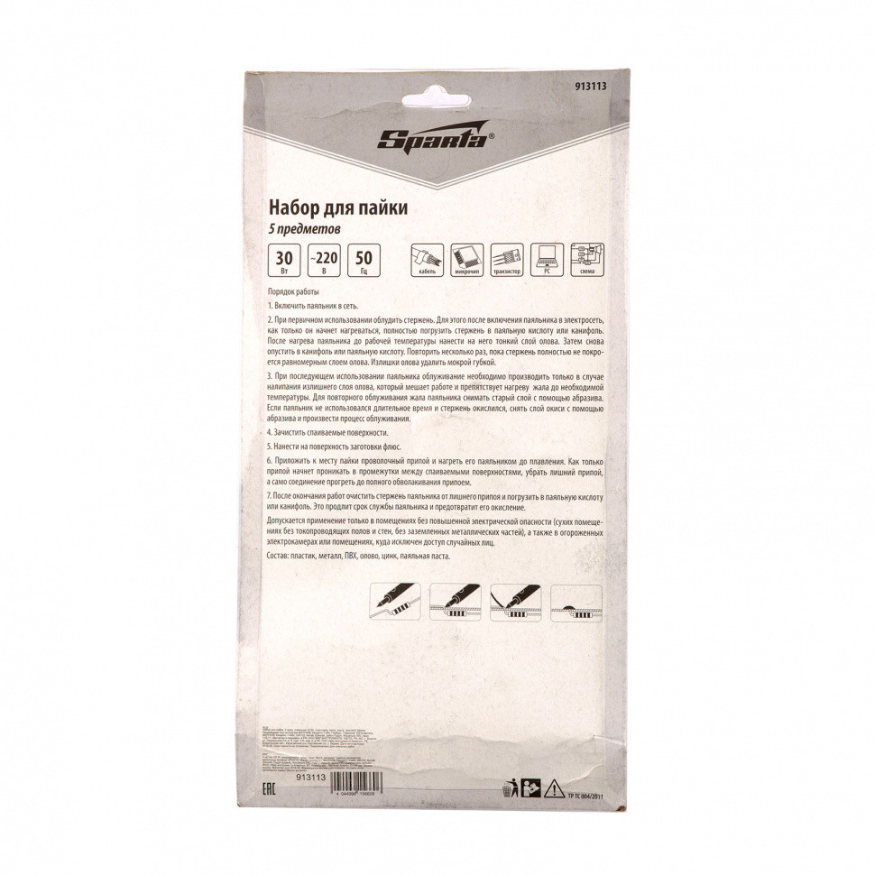 Набор для пайки, 5 предметов: паяльник 30 Вт, подставка, жало, паста, припой Sparta