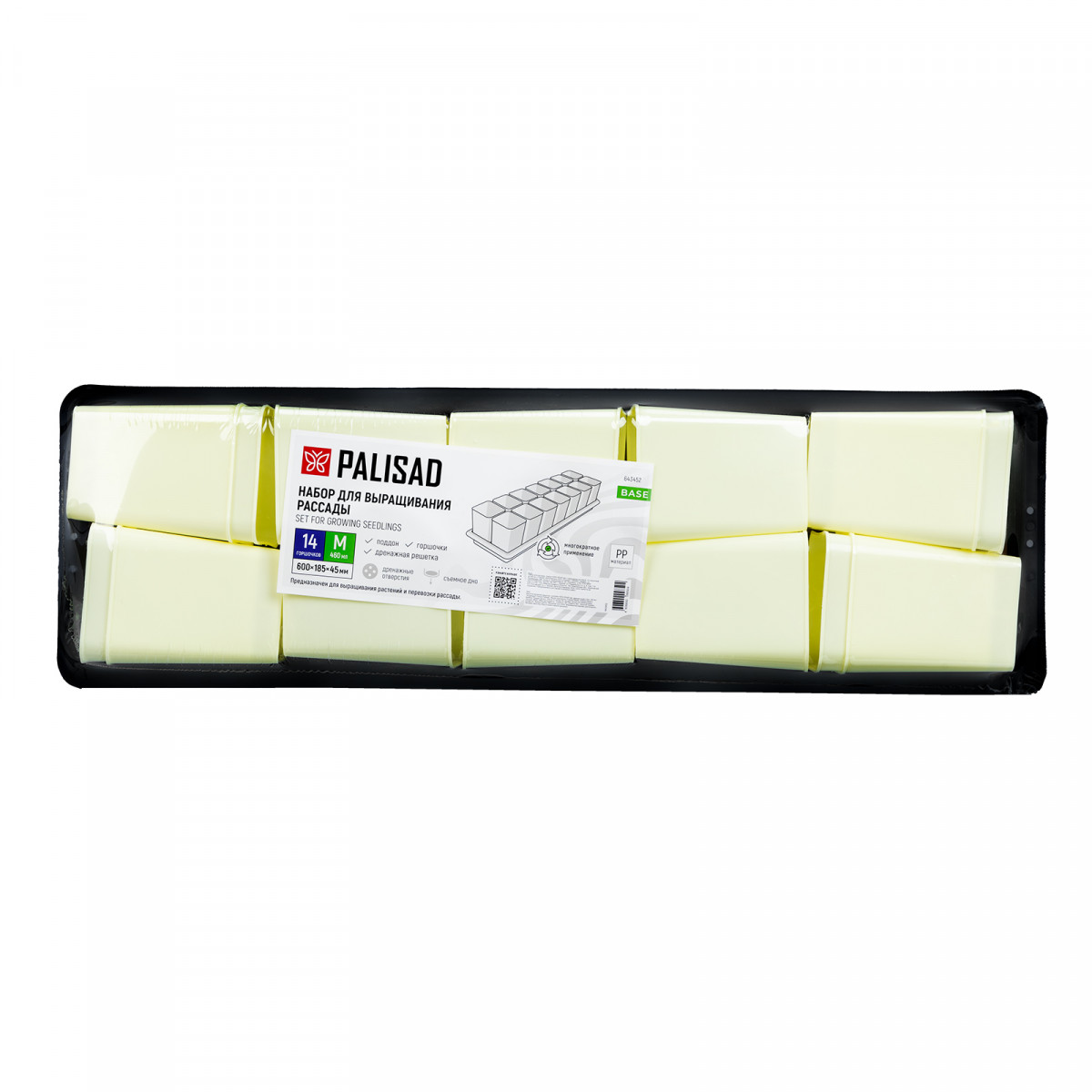 Набор для рассады, поддон 600х185х45 мм, с дренажной системой, 14 горшочков по 460 мл. Palisad