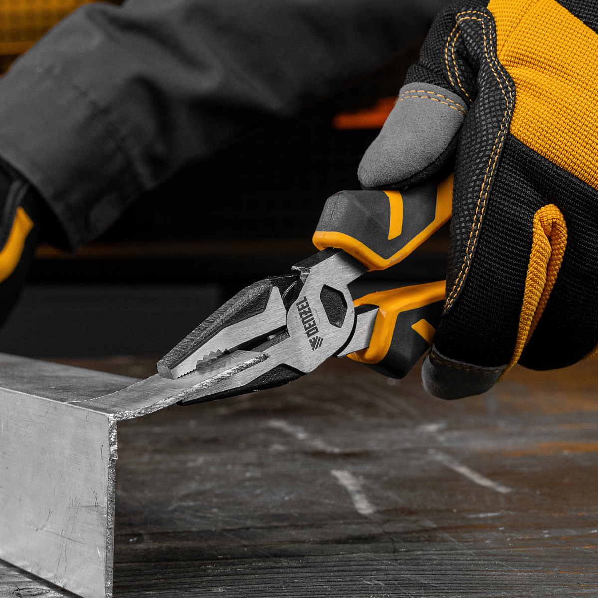 • Эффективная работа плоскогубцами — шарнир смещен к режущим кромкам, что увеличивает усилие сжатия на 20%.