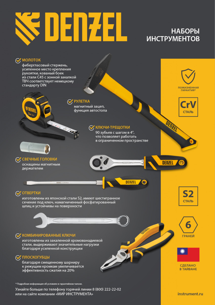 • Подтвержденное качество — на все комбинированные ключи и на торцевые головки с квадратом 1/2″ от 8 мм предоставляется пожизненная гарантия.