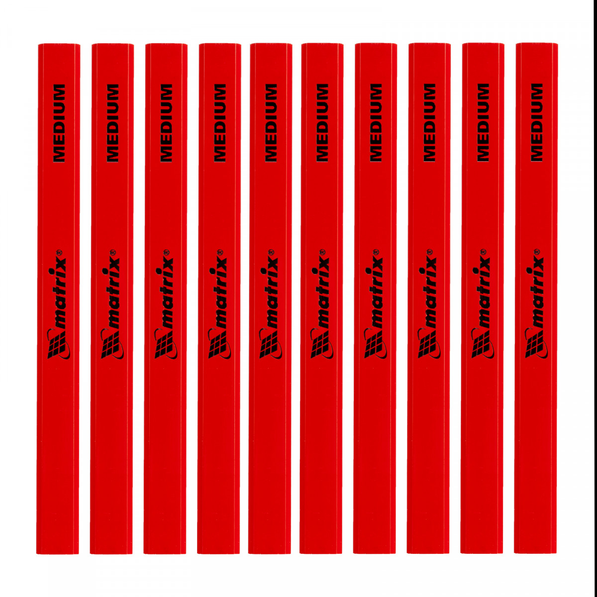 Набор Matrix 84814, упакованный в тубу, включает 10 прямоугольных малярных карандашей длиной 175 мм и точилку. Грифели средней твердости HB позволяют наносить разметку как на мягкие, так и на твердые основания, А если карандаш затупится, точилка поможет быстро вернуть ему работоспособность. Набор будет полезен для выполнения ремонтных и строительных работ.
