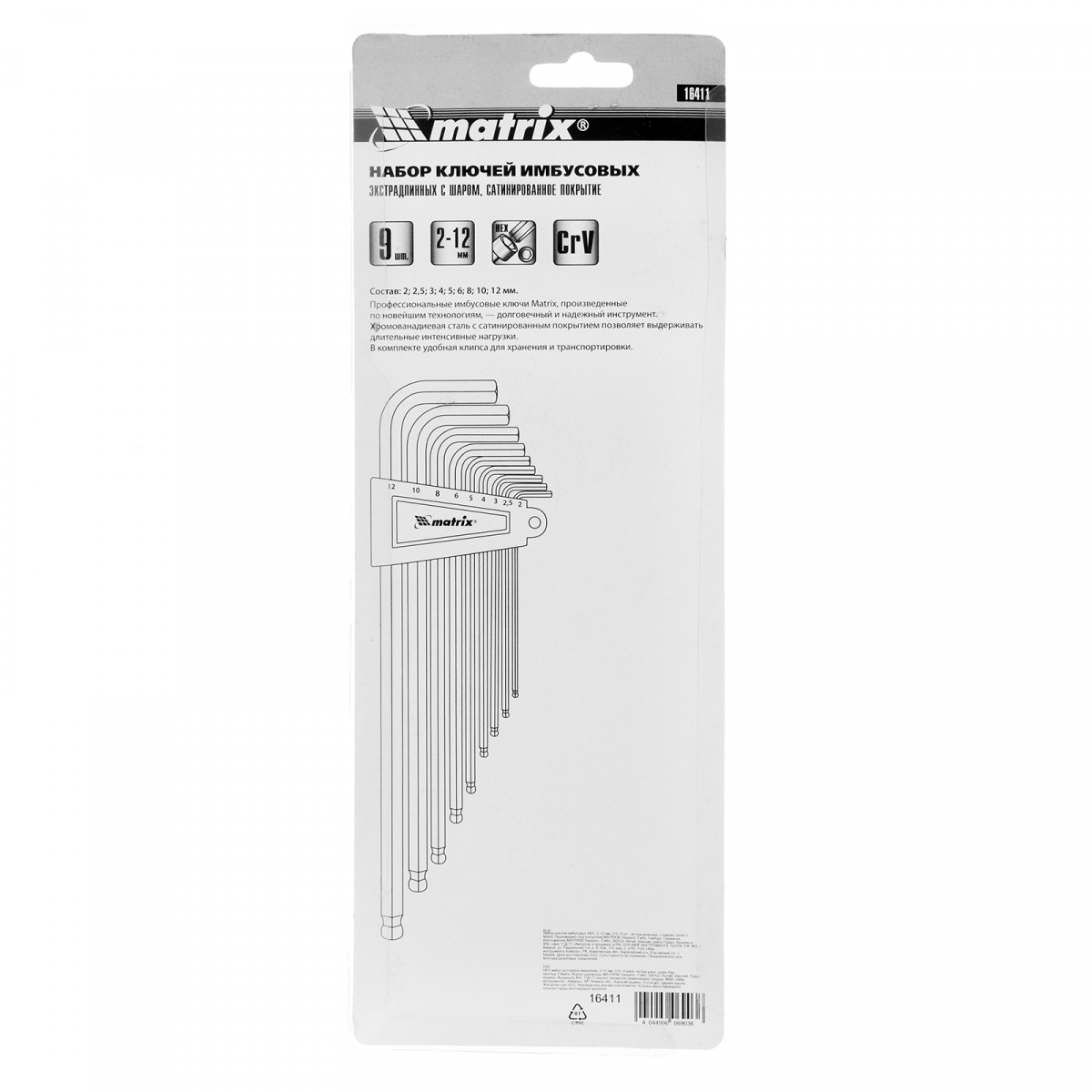 Набор из 9 экстра-длинных имбусовых ключей Matrix 16411 с шаром и сатинированным покрытием, из стали CrV, предназначен для монтажа и демонтажа болтов с внутренним шестигранником HEX 2-12 мм. Набор будет полезен для сборки мебели и ремонта велосипедов. Экстра-длинные ключи Г-образной формы облегчают работу в труднодоступных местах.