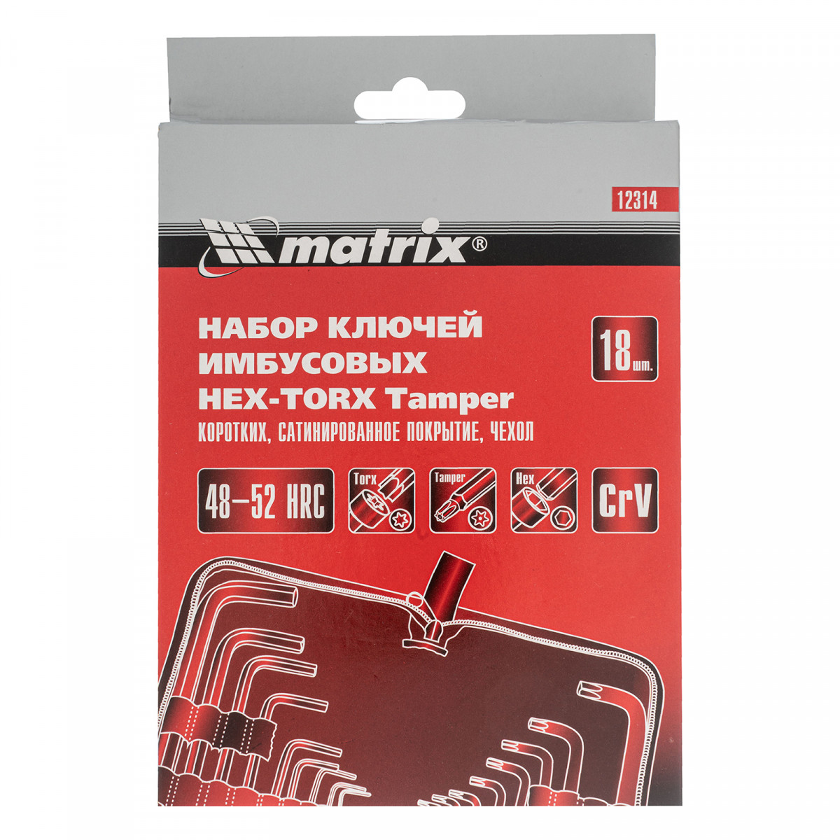 Набор ключей имбусовых HEX-Torx , 18 шт: HEX 1.5-10 мм, T10-T50, CrV, коротких, с сатиновым покрытием Matrix
