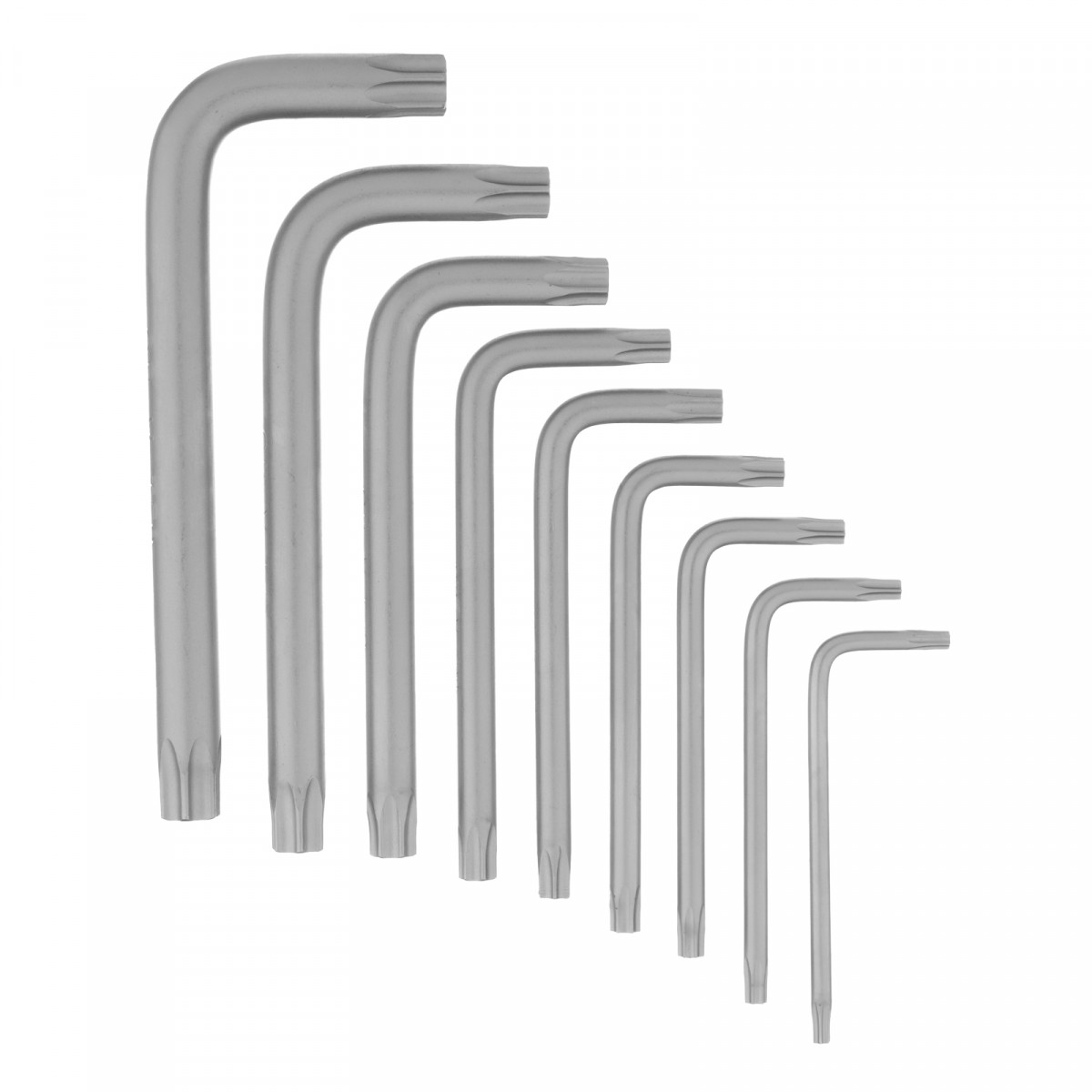 Набор Сибртех 123707 состоит из 9 имбусовых ключей размером TT10-50, из стали CrV, предназначенных для закручивания и откручивания крепежа со шлицем Torx-Tampered. Инструменты пригодятся для ремонта автомобилей, велосипедов, бытовой техники и электроники.
