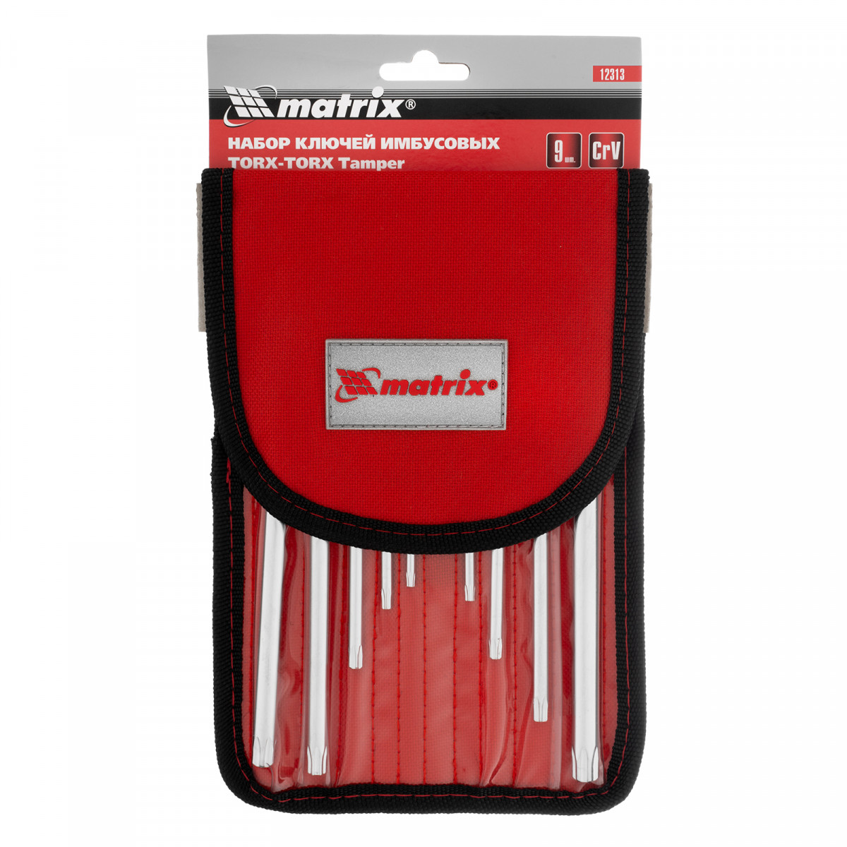 Набор Matrix 12313 в чехле включает 9 удлиненных сатинированных имбусовых ключей размером Т10-Т50, из стали CrV, и используется для монтажа и демонтажа крепежных элементов с профилем TORX-TORX Tampered. Набор пригодится для домашнего применения и профессиональных работ по ремонту бытовой и электронной техники. Ключи Г-образной формы удобны для работы с большим усилием и в труднодоступных местах.