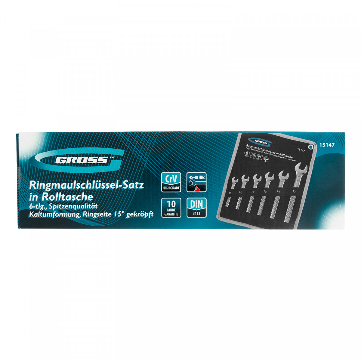 Набор ключей комбинированных 8-17 мм, 6 шт, CrV, холодный штамп Gross