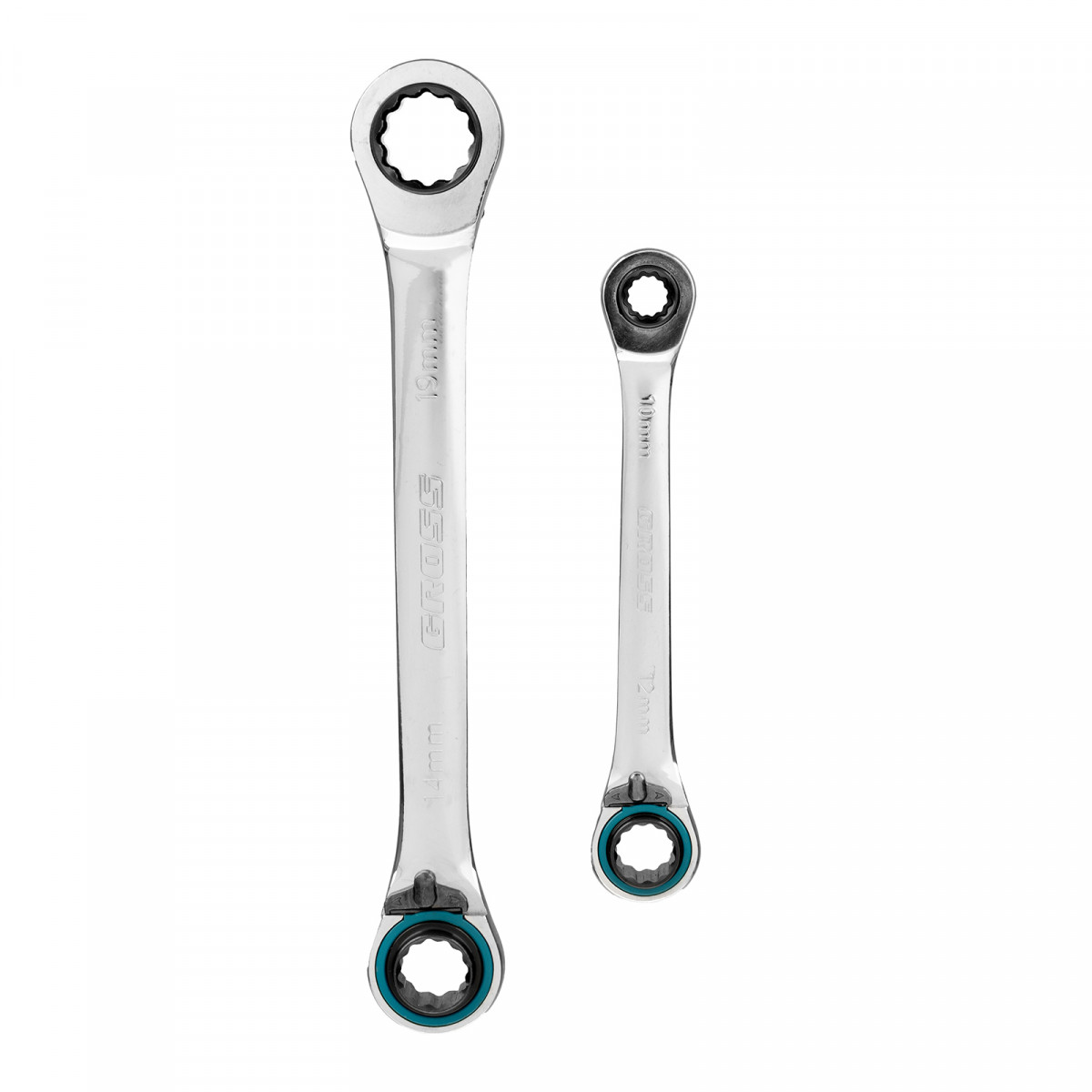 Набор ключей накидных с трещоткой, 8-19 мм, 2 шт, многоразмерные, реверсивные, CrV Gross