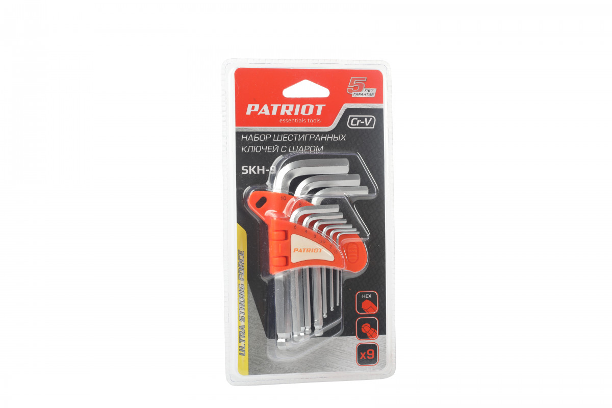 Набор ключей PATRIOT SKH-9, шестигранных с шаром, 1,5-10 мм