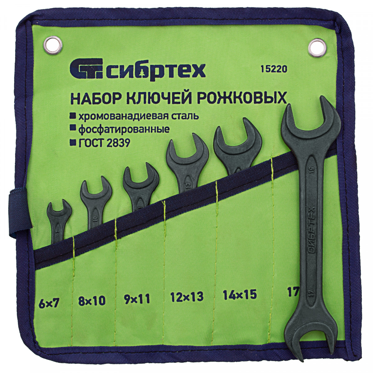 Набор ключей рожковых фосфатированных Сибртех 15220, изготовленный в соответствии с ГОСТом 2839, включает в себя 6 инструментов из стали CrV. Используется для монтажа и демонтажа шестигранных резьбовых крепежей диаметром 6-19 мм. Ключи сделаны двусторонними — на каждом конце есть губки с различным размером зева. Набор будет полезен в сервисном центре, авторемонтной мастерской, при монтаже оборудования, а также пригодится дома или на даче.