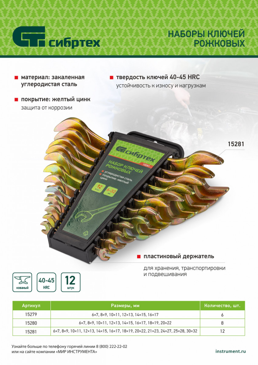Набор рожковых ключей Сибртех 15281 размером 6-32 мм, с покрытием «желтый цинк», 12 штук в упаковке, используется для монтажа и демонтажа шестигранного резьбового крепежа соответствующего диаметра. Каждый ключ имеет две рабочие части с разным размером зева. Набор будет полезен в сервисном центре, авторемонтной мастерской, при выполнении монтажных работ. Пригодится также дома и на даче.