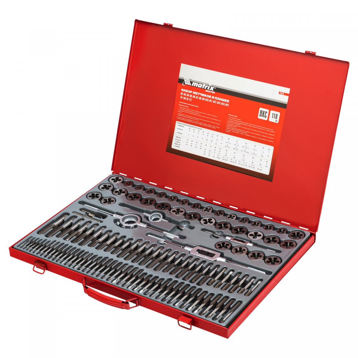 Набор метчиков и плашек М2-М18, 110 шт, металлический кейс Matrix
