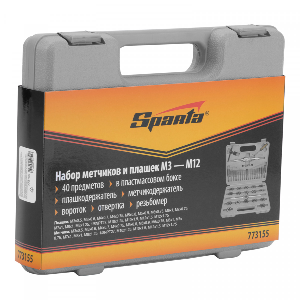 Набор метчиков и плашек М3-М12, плашко-метчикодержатель, 40 предметов, пластиковый бокс Sparta