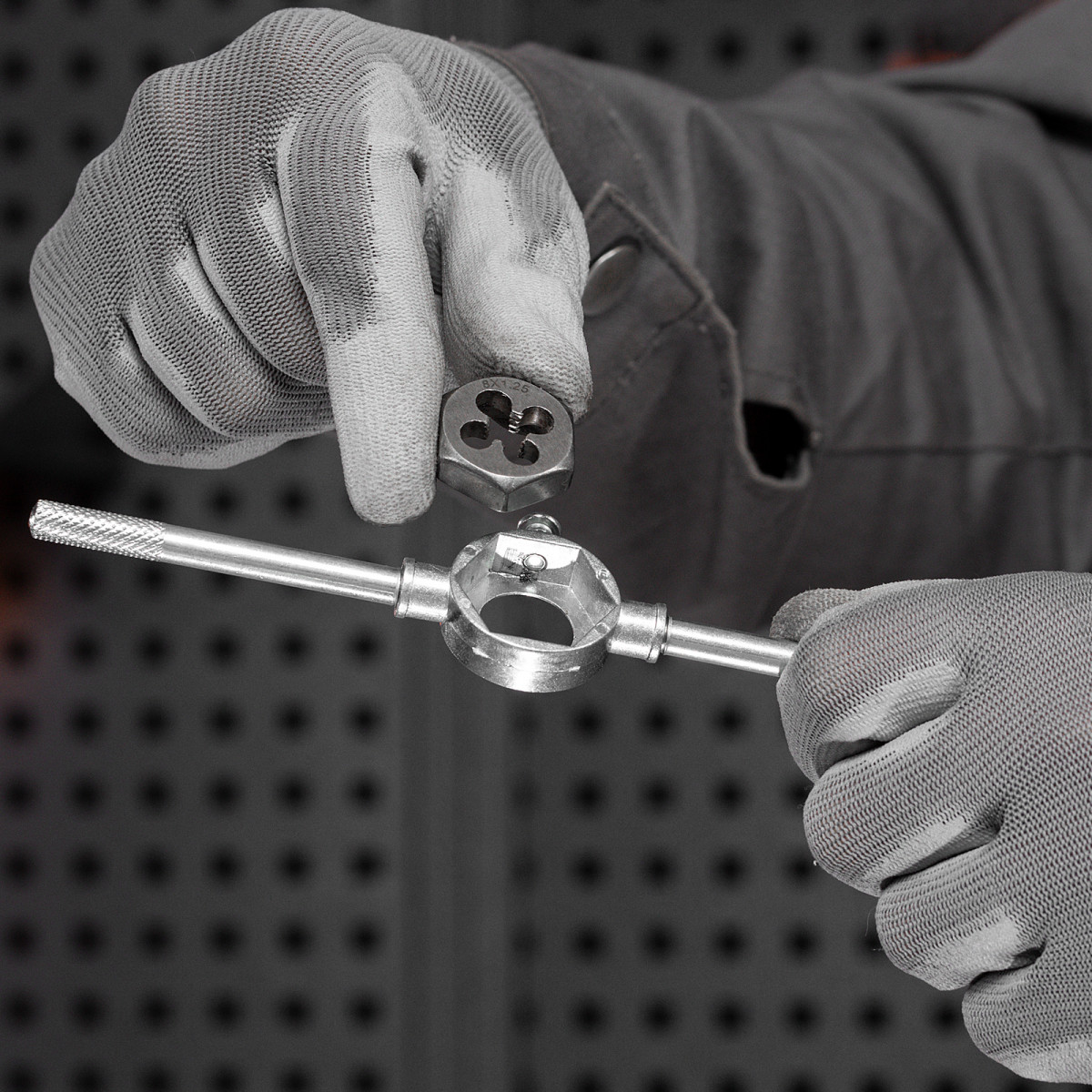 • Получение ровной внешней резьбы — плашки закрепляются при помощи бокового винта и не проворачиваются в держателе.